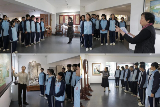 理论学习和组织生活之外,党支部充分发挥离退休教师的专业特长和育人热情。活动特别安排了“老书记工作室”和“银龄薪火”职教人才团队的成员,依托学校非遗基地“贝雕艺术馆”,组织在校学生开展“红色+非遗”现场讲解。老教师们详细介绍许承斌大师的精美的贝雕作品,将深厚的职业情感、精湛的专业技艺以及对传统文化矢志不渝的守护之心,毫无保留地传递给年轻学子。这一刻,银发与青春对话,匠心与梦想碰撞,不仅是一堂生动的专业技能课,更是一堂深刻的思政教育课,完美诠释了“银龄薪火”的传承真谛。