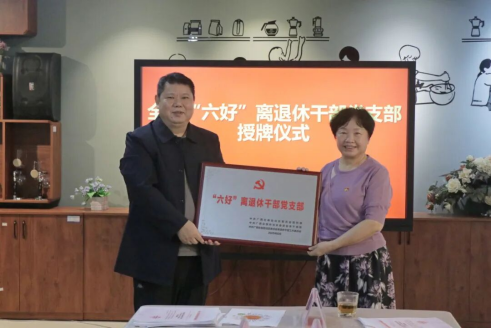 在热烈的掌声中,刘革成副局长将“‘六好’离退休干部党支部”牌匾授予退休党支部书记罗彤彤。这一荣誉的获得标志着我校退休党支部建设工作取得了重要成果,充分体现了上级党组织对基层离退休干部党建工作的高度肯定。
