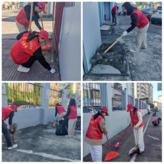 学校党委带领工会提前部署、周密安排本次志愿服务活动,活动将党员志愿者分为三个小组,明确分工、压实责任、高效推进。第一组志愿者对小区门口、楼道、停车场等公共区域进行全面清扫。他们清扫落叶、纸屑,捡拾烟头及隐藏垃圾,铲除地面污渍,规整杂物摆放。第二组志愿者对小区公共区域、道路两侧的杂草进行集中清理。第三组志愿者化身“文明宣传员”,挨家挨户上门发放《北海市文明城市建设基本知识》。志愿者们耐心细致地向居民讲解文明城市创建的核心内容、普及垃圾分类等相关知识,引导居民从自身做起,自觉践行文明行为。活动中,大家热情高涨、干劲十足。经过志愿者们的共同努力,小区及周边路面焕然一新,为居民营造整洁有序、文明和谐的环境。