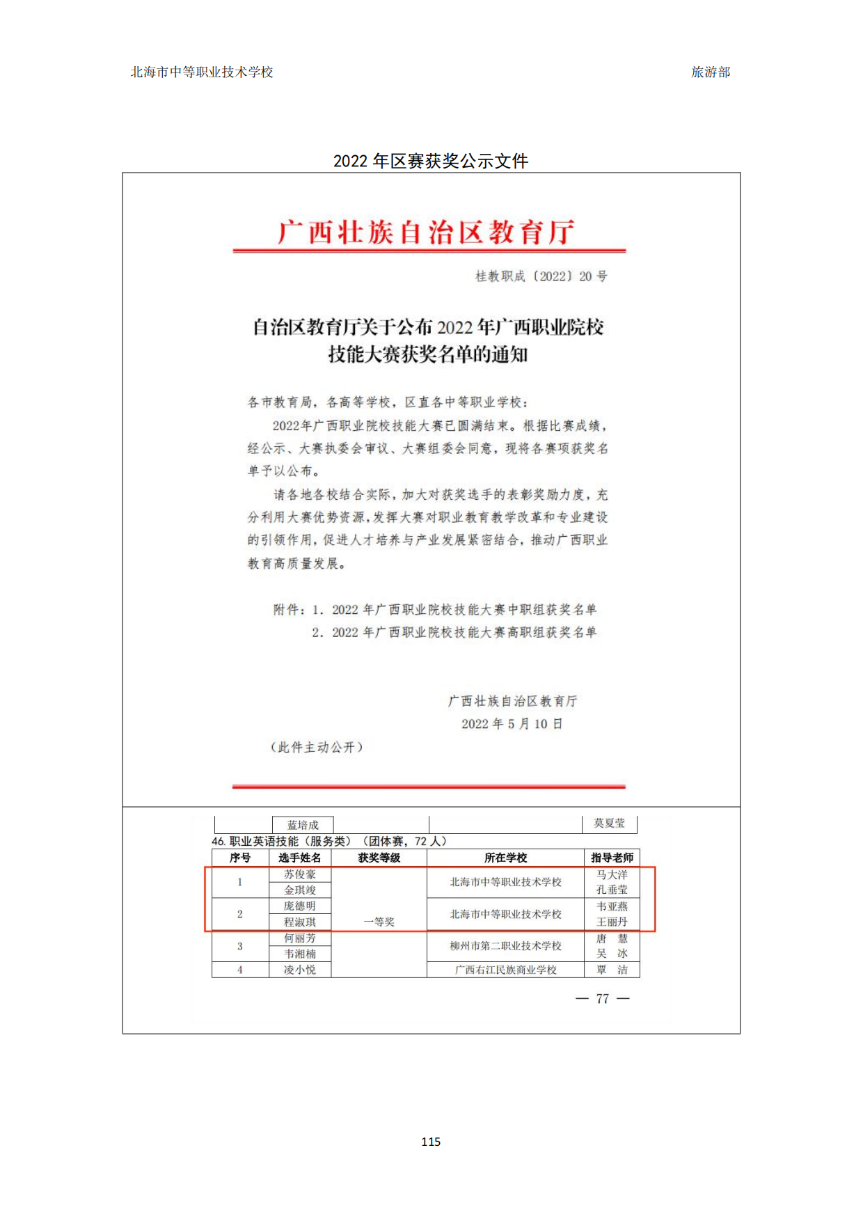 广西中等职业学校品牌专业建设与发展标志性成果佐证材料