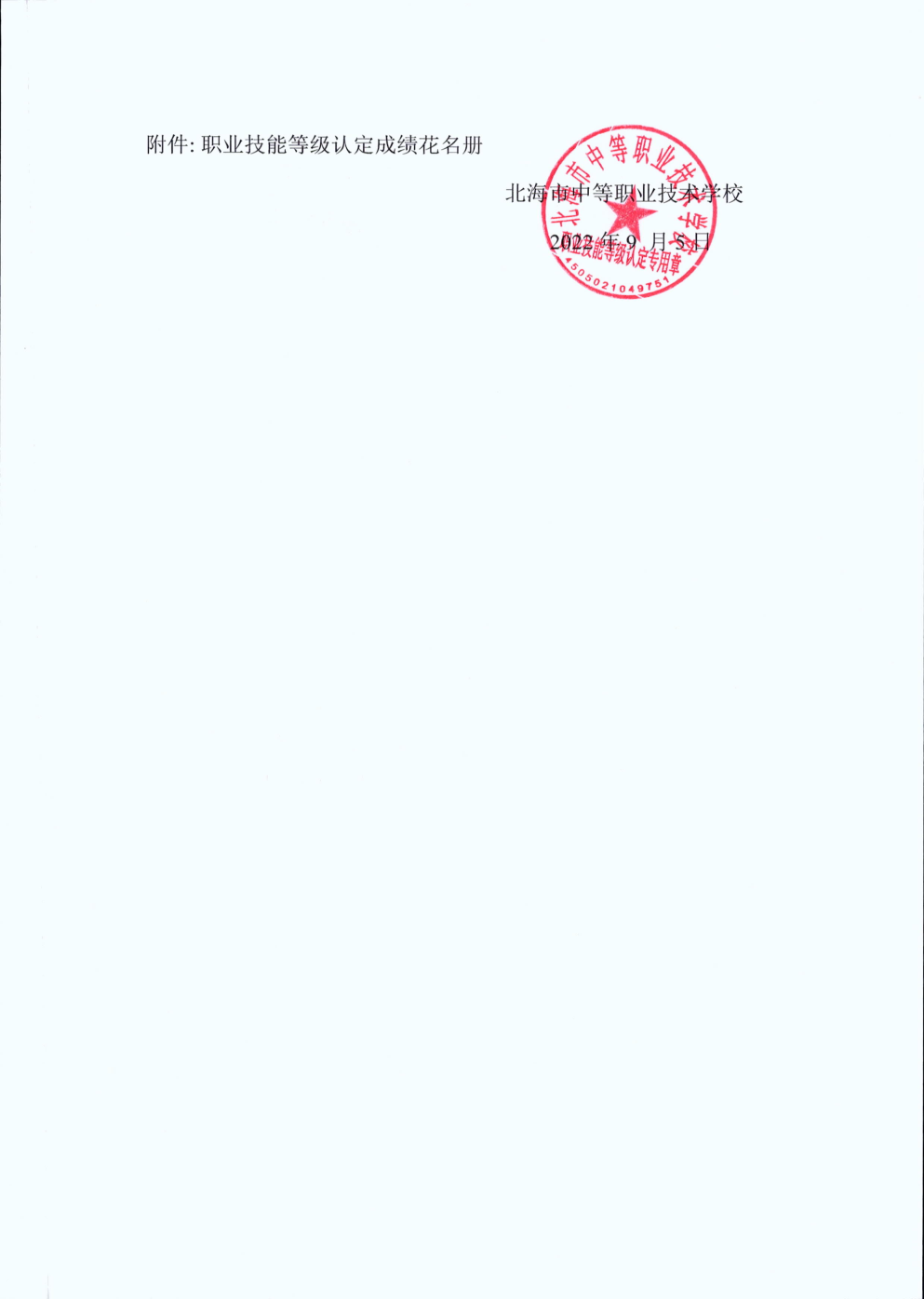 附件: 职业技能等级认定成绩花名册