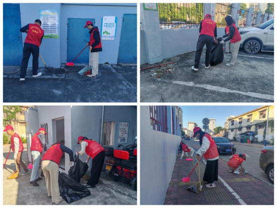 图2 第一组志愿者对小区公共区域进行全面清扫