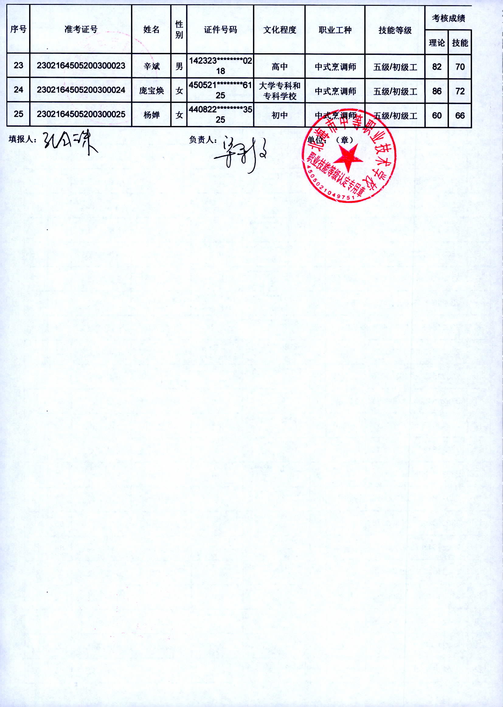 附件: 职业技能等级认定成绩花名册